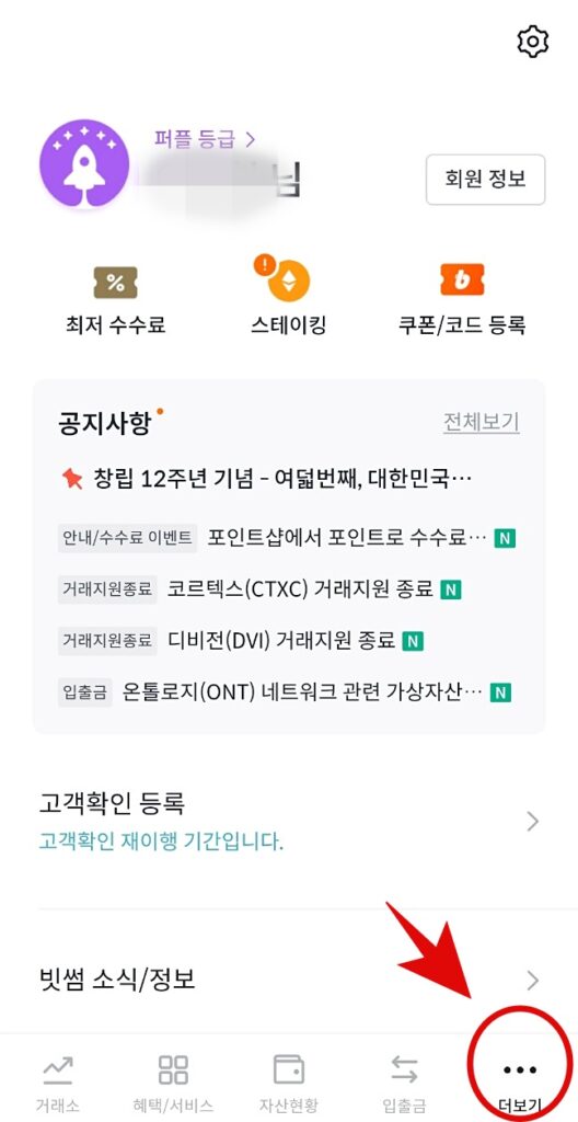 먼저, 어플 기준으로 우측 하단에 ‘더보기’를 클릭해주세요